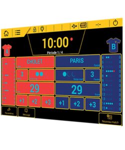 Marcador electrónico para baloncesto 3×3 con módulo de control de tiempo de posesión.