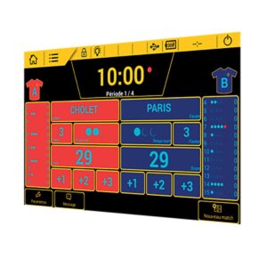 Marcador electrónico para baloncesto 3×3 con módulo de control de tiempo de posesión.