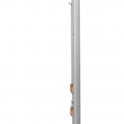 El diseño incorpora marcas de altura reglamentarias para agilizar la regulación de la red conforme a las normativas oficiales. Los topes de goma en los extremos protegen la superficie de juego, evitando daños en el suelo y asegurando una mayor estabilidad. Este poste está diseñado para su uso en bases empotradas, garantizando una sujeción firme y segura.
