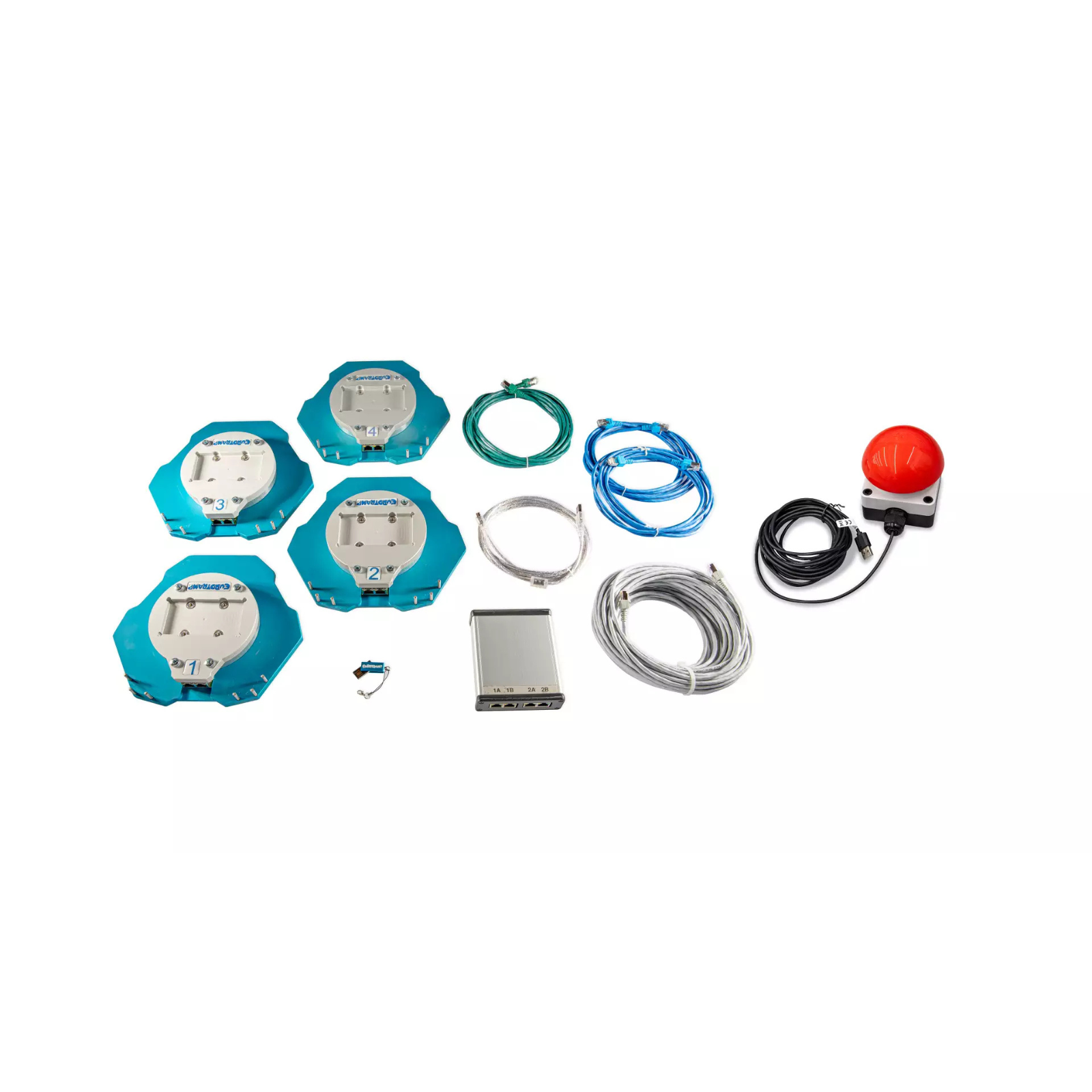 Sistema de medición para trampolín Eurotramp HDTS02 con software, buzzer, cableado, 4 placas y sensores para 1 trampolín de competición. Permite medir posición, tiempo y sincronización. Certificado FIG.